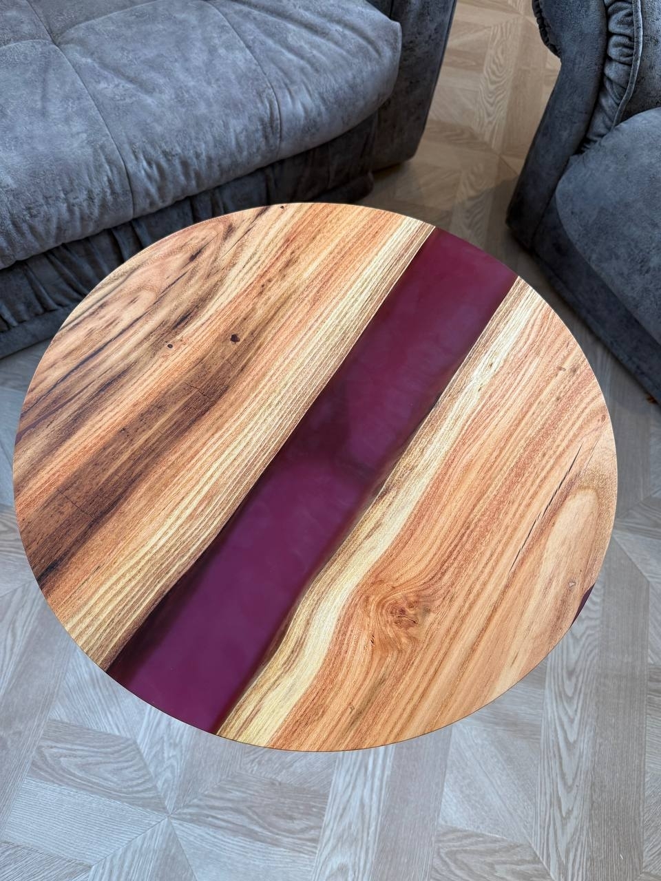 - Полупрозрачная эпоксидная смола придает столу неповторимый вид и оригинальность.